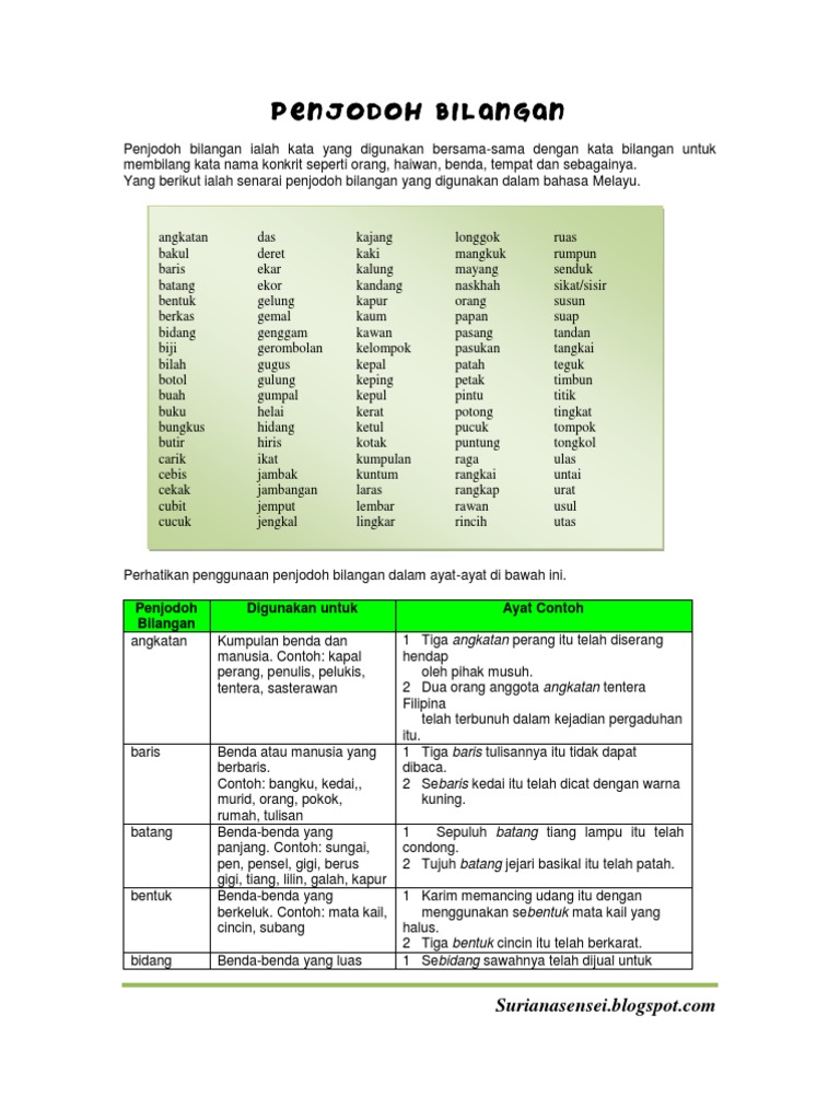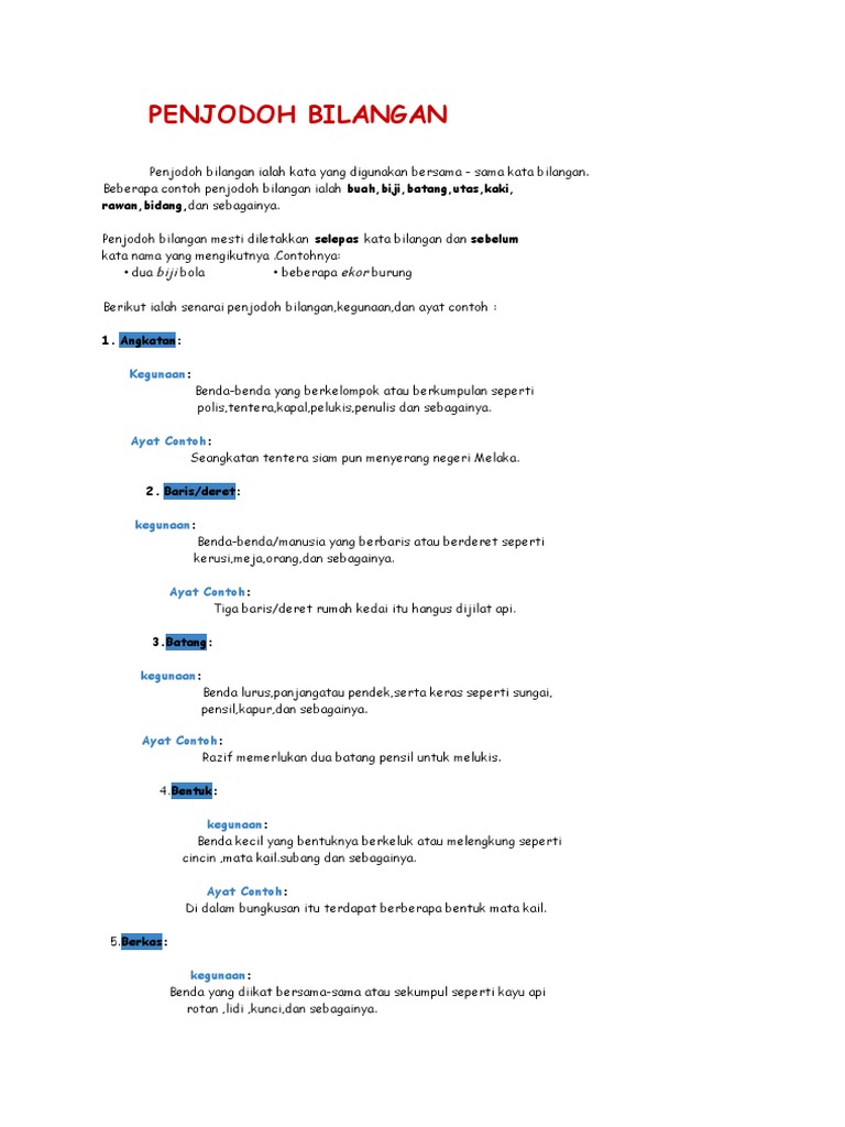 Penjodoh Bilangan Dengan Gambar from imgv2-1-f.scribdassets.com Penjodoh bilangan digunakan sebelum sesuatu kata atau nama yang menunjukkan jumlah atau bilangan. Pengertian pecahan konversi pembulatan pembagian perkalian soal. Seangkatan pegawai polis bergegas ke tempat kemalangan itu. Penjodoh bilangan ialah kata nama yang menjadi pasangan kepada kata bilangan bagi. Murid murid dan memberi memberi respon teguran terhadap terhadap. Bilangan prima adalah bilangan asli yang memiliki nilai lebih besar dari 1 dan hanya bisa dibagi oleh 2 bilangan, yaitu 1 dan bilangn itu sendiri. Penjodoh bilangan penggunaan contoh ayat angkatan tentera, kapal perang, penulis,polis,kadet angkatan tentera negara bertanggungjawab atas keamanan negara. Bagi menghasilkan ayat yang gramatis dan untuk menunjukkan bilangan kata nama perlu hadir berpasangan dengan penjodoh bilangan.