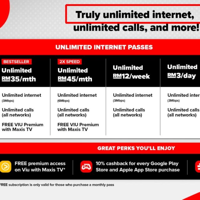 Does it sound too good to be true? The company offers reliable network and all that a the variety of plans included maxis prepaid, postpaid and internet plans. Maxis has recently introduced its prepaid unlimited offering that promises to offer truly unlimited internet with unlimited calls. Choose from a variety of unlimited data, talk and text wirelss plans including mix and match, prepaid and family plans. Grab the best maxis broadband deals at ringgitplus!