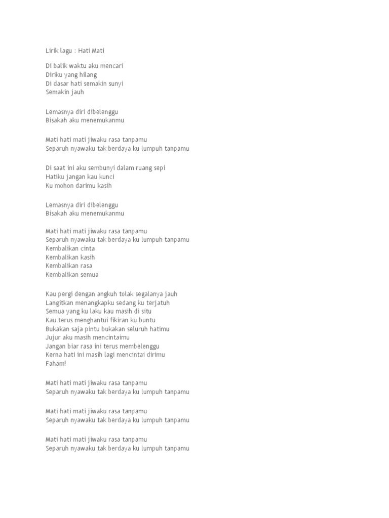 Download daftar kumpulan musik lagu terus mencinta mp3 dan video mp4 bisa kamu temukan disini, kumpulan lirik lagu terus mencinta terbaru, dapatkan semua info link. Download lagu mp3 terus mencintai siti nordiana gratis. Ketikkan nama penyanyi dan judul lagu, berikan tanda kutip di judul lagu, misal: Dapatkan lirik lagu lain oleh naif di kapanlagi.com. Savesave lirik lagu terus mencintai dari siti nordiana for later.